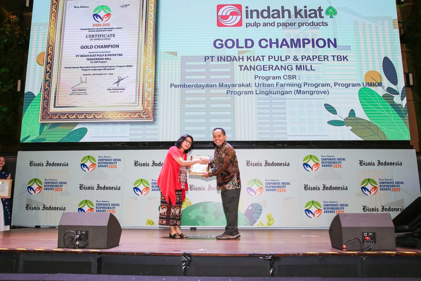 “Penghargaan BISRA ini menjadi penyemangat bagi kami untuk terus melaksanakan program CSR berkelanjutan, yang sejalan dengan Sustainability Roadmap Vision 2030 (SRV 2030) APP Group dan komitmen jangka panjang perusahaan melalui platform keberlanjutan terbaru Regenesis dengan inisiatif awal Forest Positive Policy,” pungkas Head of Sustainabilty PT. Indah Kiat Pulp & Paper Tbk. Tangerang Mill, Kholisul Fatikhin.
