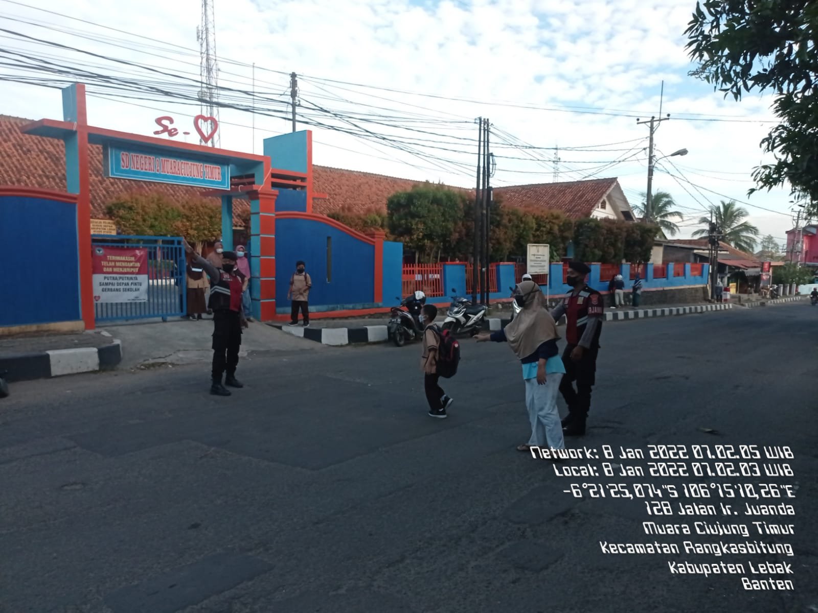 Untuk memberikan rasa aman dan nyaman, Sat Samapta Polres Lebak Polda Banten Lakukan Patroli dan Pengaturan arus Lalu Lintas di SD Negeri 2 Muara Ciujung Timur Rangkasbitung, Kabupaten Lebak. Sabtu (8/1/2022)