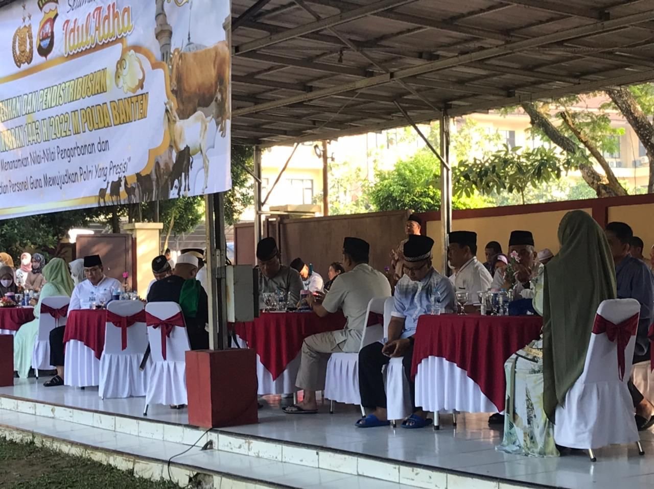 Dalam rangkaian acara tersebut, kegiatan dimulai dengan sholat ied bersama anggota dan masyarakat sekitar, kemudian dilanjutkan dengan penyembelihan hewan qurban di Masjid Baiturrahman Polda Banten.