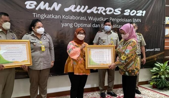 Melalui acara bertema Tingkatkan Kolaborasi Wujudkan Pengelolaan BMN yang optimal dan berkualitas, BPN Tangsel mendapatkan dua penghargaan, yakni kolaborasi dalam percepatan program sertifikasi BMN berupa tanah tahun 2021 dan Pencapaian dalam melaksanakan tertib penatausahaan BMN tahun 2021.