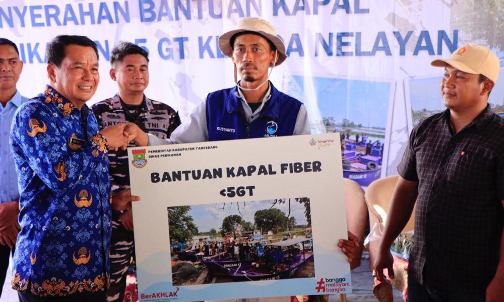 TANGERANG —Pemerintah Kabupaten Tangerang melalui Dinas Perikanan menyerahkan bantuan sebanyak 9 unit kapal tangkap ikan sebagai bentuk komitmen nyata dalam memperkuat sektor kelautan dan perikanan.