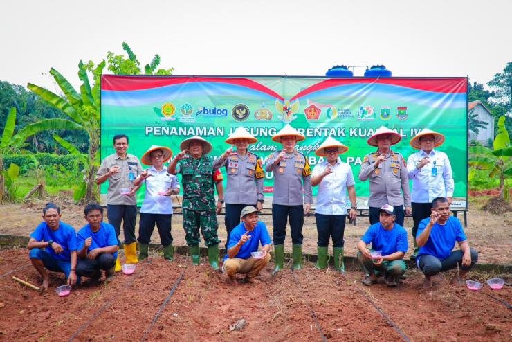 Wakil Wali Kota Tangerang Selatan (Tangsel) Pilar Saga Ichsan menghadiri kegiatan Tanam Jagung Serentak Kuartal 4 yang diselenggarakan oleh Polres Tangerang Selatan dalam rangka mendukung swasembada pangan yang diselenggarakan di Kawasan Pertanian Terpadu, Serpong, pada Rabu (08/10/2025).