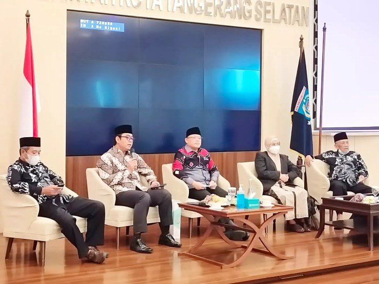 Kepala Kantor Kemenag Tangsel, Dedi Mahfudin, menghadiri acara Pelantikan dan Orientasi Dewan Hakim MTQ XIII Tingkat Kota Tangsel, Kamis (03/01/2022) yang diadakan di aula Blandongan Pemkot Tangsel. Pelantikan dilakukan oleh Wali Kota Tangsel Benyamin Davnie.