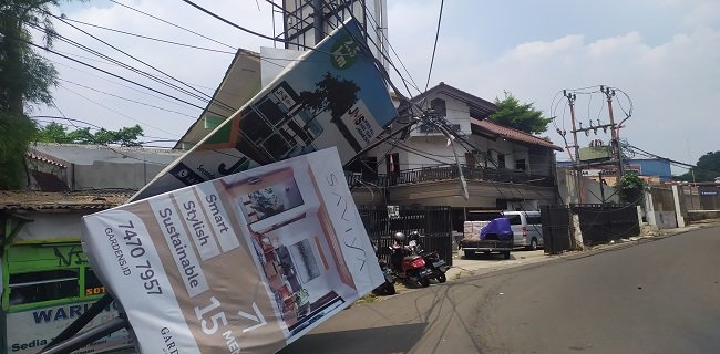 Akibatnya dua papan iklan dan satu tiang penerang jalan nyaris roboh. Bahkan, kabel-kabel utilitas disekitar lokasi nyaris putus dan menutup salah satu ruko. Dan, juga dua papan iklan yang roboh nyaris menimpa mobil warga yang sedang terparkir di pinggir jalan.