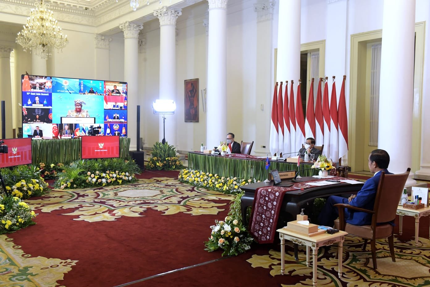 Saat berpidato pada Konferensi Tingkat Tinggi (KTT) ke-16 East Asia Summit (EAS) secara virtual dari Istana Kepresidenan Bogor, Jawa Barat, Rabu (27/10/2021), Presiden Joko Widodo menyatakan bahwa berbagai capaian tersebut masih rentan dan harus terus dipelihara bersama.