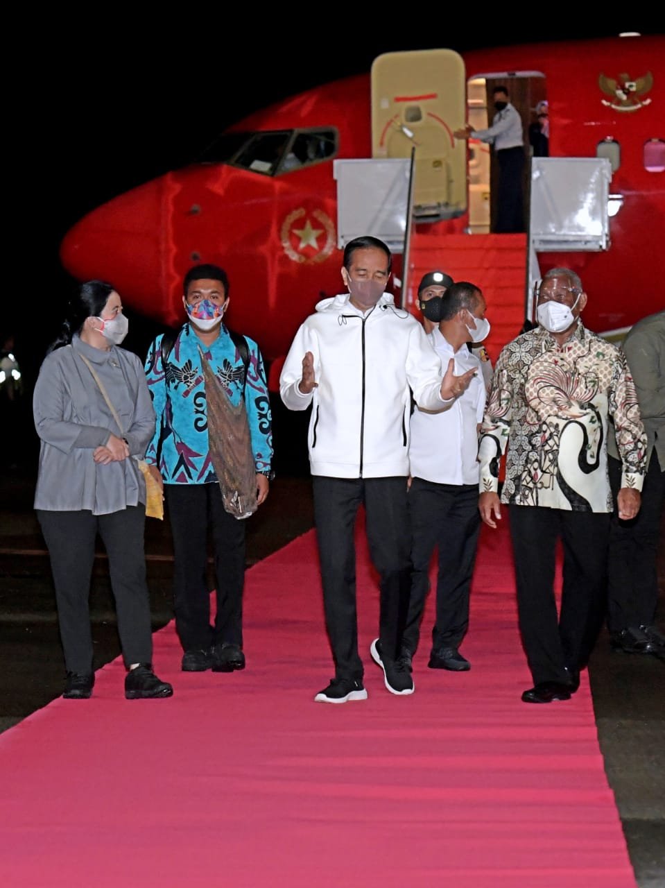 Presiden Joko Widodo tiba di Bandara Internasional Domine Eduard Osok, Kota Sorong, Papua Barat, Minggu (03/10/2021). (Foto: BPMI Setpres/Kris)