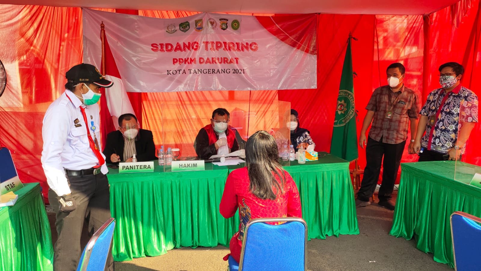 TANGERANG – Puluhan pelanggar PPKM Darurat covid-19 di Kota Tangerang mengikuti sidang tindak ppidana ringan (tipiring), Jum’at, (9/7/2021).