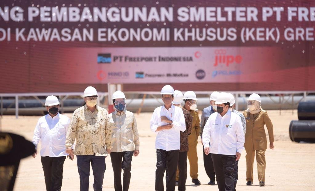Acara groundbreaking pembangunan smelter PT Freeport Indonesia, di KEK Gresik, Jatim, Selasa (12/10/2021). (Foto: Humas Kemenko Perekonomian)