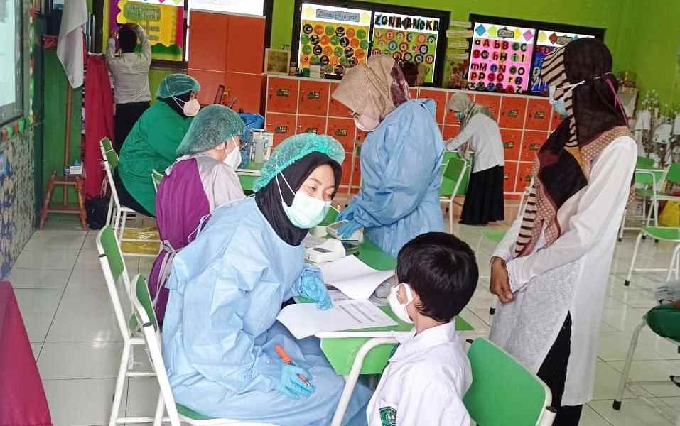 Vaksinasi ini dikhususkan bagi siswa kelas 3, 4, dan 6, dibagi dua sesi, pukul 08-09 dan pukul 09-10 WIB.