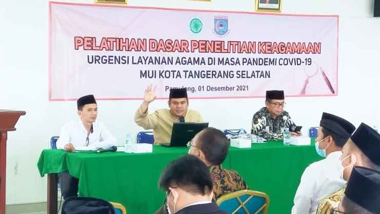 Majelis Ulama Indonesia (MUI) Kota Tangsel lewat Komisi Pengkajian dan Penelitiannya mengadakan Pelatihan Dasar Penelitian Keagamaan, Rabu (01/12/2021), yang diselenggarakan di aula Gedung Lembaga Keagamaan Kota Tangsel, Pamulang.