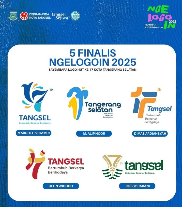 Pemerintah Kota Tangerang Selatan (Tangsel) bersama Dewan Kerajinan Nasional Daerah (Dekranasda) Tangsel dan komunitas Tangsel Sejiwa mengumumkan 5 finalis Ngelogoin 2025, sayembara ini digelar dalam rangka menyambut Hari Ulang Tahun (HUT) ke-17 Kota Tangsel.