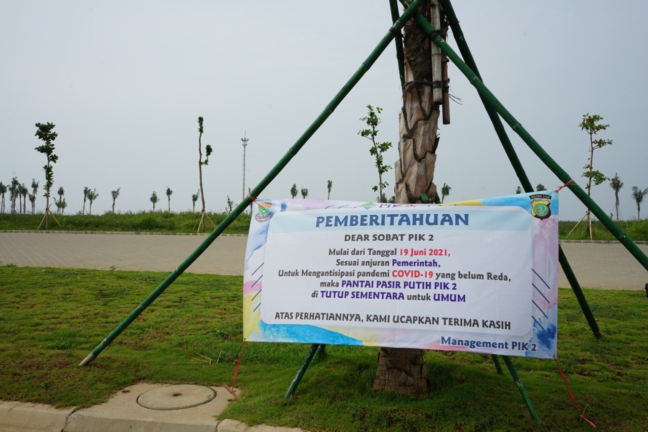 TANGERANG – Pemkab Tangerang memutuskan menutup lokasi wisata Pasir Putih Pantai Indah Kapuk (PIK) 2 untuk mencegah penyebaran covid-19 yang tengah menggila. Sebab, di lokasi wisata tersebut dapat menimbulkan keramaian dan menjadi tempat penyebaran virus COVID-19.