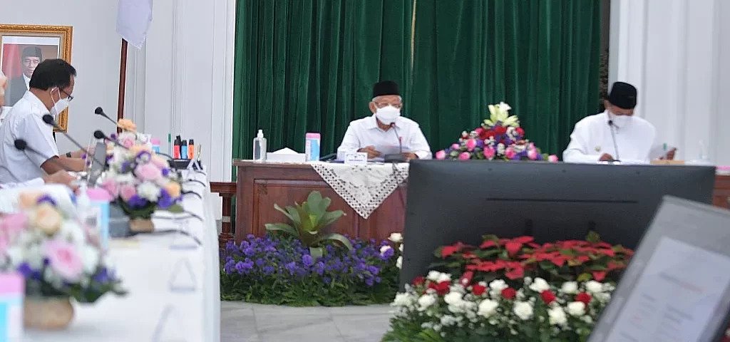 Wapres Ma’ruf Amin memimpin Rapat Percepatan Penanggulangan Kemiskinan Ekstrem, di Gedung Sate, Kota Bandung, Rabu (29/09/21). (Foto: BPMI Setwapres)