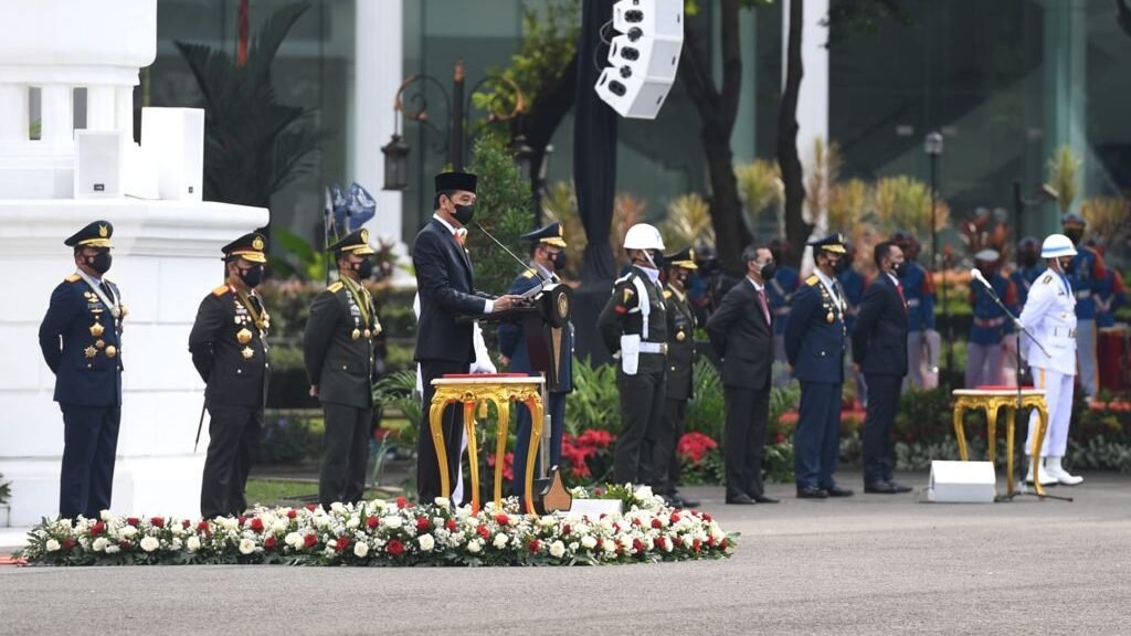 Hal tersebut disampaikan oleh Presiden dalam amanatnya selaku Inspektur Upacara pada upacara peringatan ke-76 Hari TNI di halaman Istana Merdeka, Jakarta, Selasa, 5 Oktober 2021.