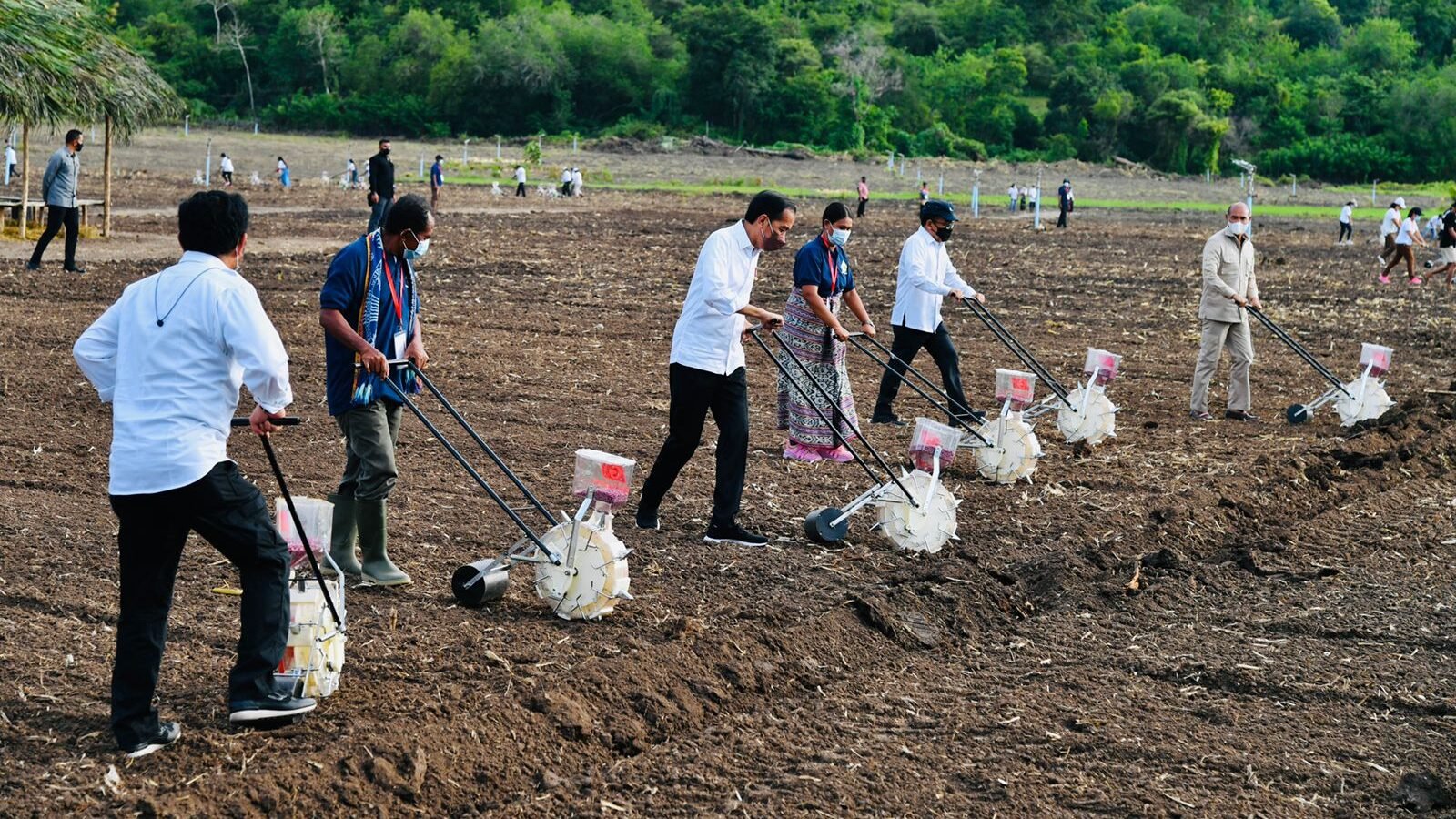 “Saya rasa kalau kita berani menggunakan teknologi, berani mencoba di lahan-lahan yang sulit seperti yang di NTT ini, nanti akan kelihatan semuanya, apa yang perlu diperbaiki, apa yang perlu dikoreksi, dan apa alsintan (alat dan mesin pertanian) yang pas untuk digunakan di daerah seperti NTT ini,” ujar Presiden.