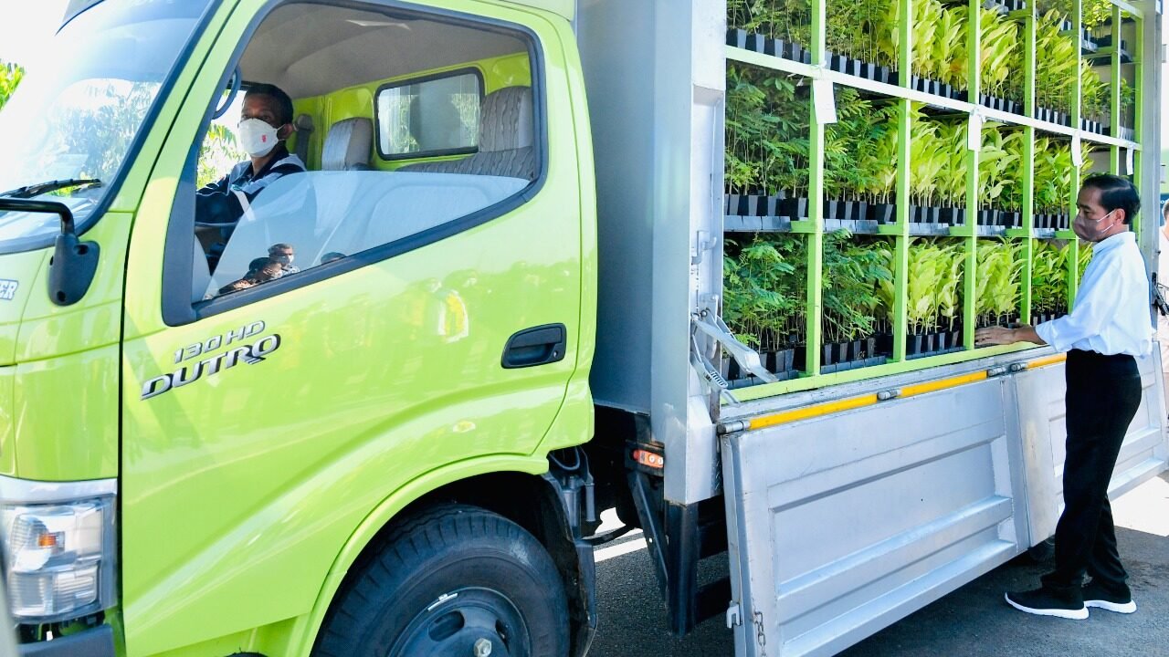 “Dimulai dari persemaian, dari pembibitan seperti ini, sehingga jelas dan konkret ke mana perbaikan-perbaikan itu kita lakukan. Karena kita tahu hutan mangrove bisa mereduksi, menyerap karbon 4 kali lipat dibandingkan hutan biasa, hutan hujan tropis biasa,” ujar Kepala Negara.