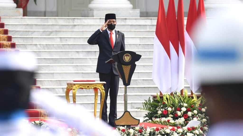 Presiden Joko Widodo yang bertindak selaku Inspektur Upacara memimpin upacara peringatan ke-76 Hari Tentara Nasional Indonesia (TNI) yang digelar di halaman Istana Merdeka, Jakarta, pada Selasa, 5 Oktober 2021. Tema yang diangkat pada peringatan tahun ini adalah “Bersatu, Berjuang, Kita Pasti Menang”.
