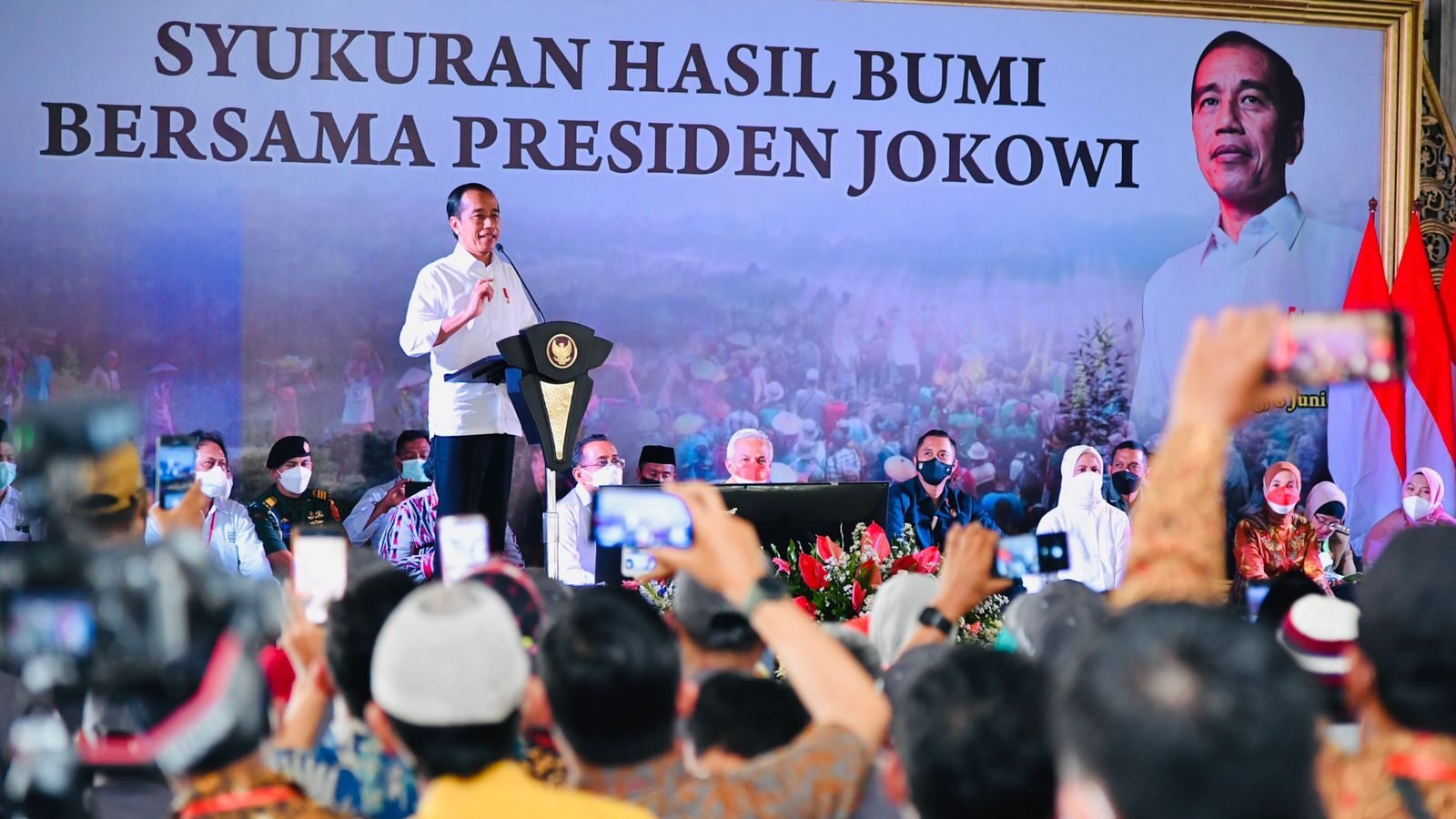 Dalam kesempatan itu, Presiden juga menjelaskan mengenai situasi dunia yang sulit karena pandemi Covid-19, ditambah perang Ukraina, hingga banyak negara mengalami kekurangan pangan. Untuk itu, Presiden mengajak para petani dan masyarakat untuk mengambil peluang dan memanfaatkan lahan yang mereka kelola dengan menanam tanaman pangan pokok seperti padi, jagung, porang, hingga sorgum.