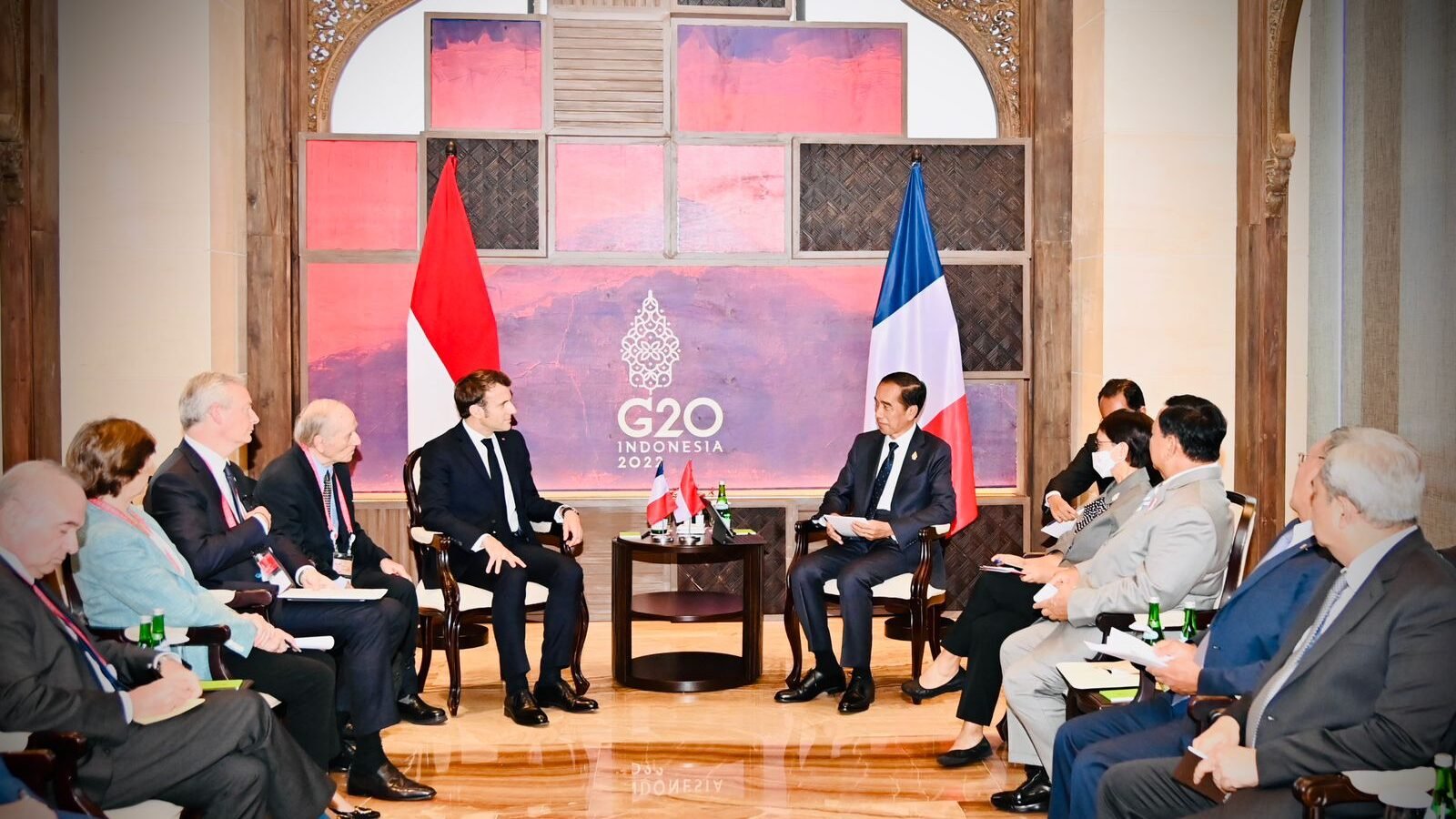 Di sela-sela penyelenggaraan Konferensi Tingkat Tinggi (KTT) G20 Bali tahun 2022, Presiden Joko Widodo mengadakan pertemuan bilateral dengan Presiden Prancis, Emmanuel Macron. Pertemuan keduanya berlangsung di Hotel Apurva Kempinski, Kabupaten Badung, pada Selasa, 15 November 2022.