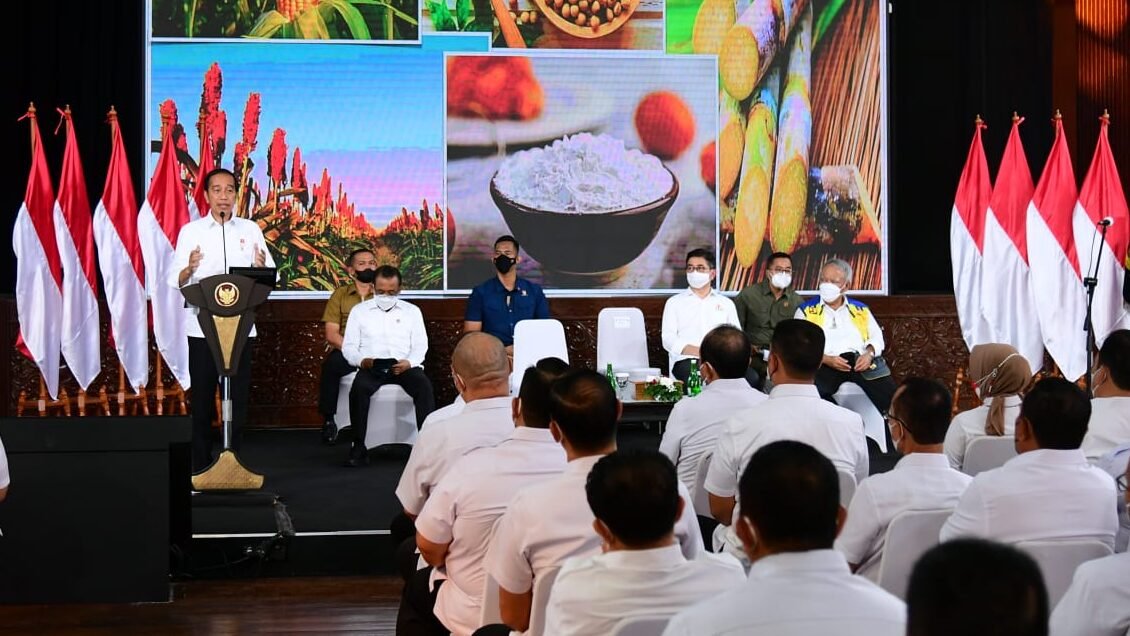 Presiden memberikan arahan pada Kadin Provinsi se-Indonesia di Taman Mini Indonesia Indah (TMII), Jakarta, pada Selasa, 23 Agustus 2022. (rls)