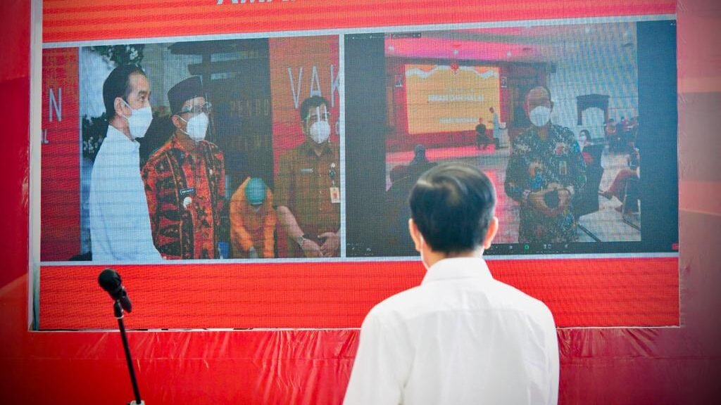 Kepala Negara juga memantau dan memberikan arahan mengenai jalannya proses vaksinasi di beberapa lokasi tersebut melalui konferensi video untuk memastikan kesiapan Kabupaten Sidoarjo, rumah sakit, serta fasilitas puskesmas dalam menyukseskan kebijakan vaksinasi massal ini.