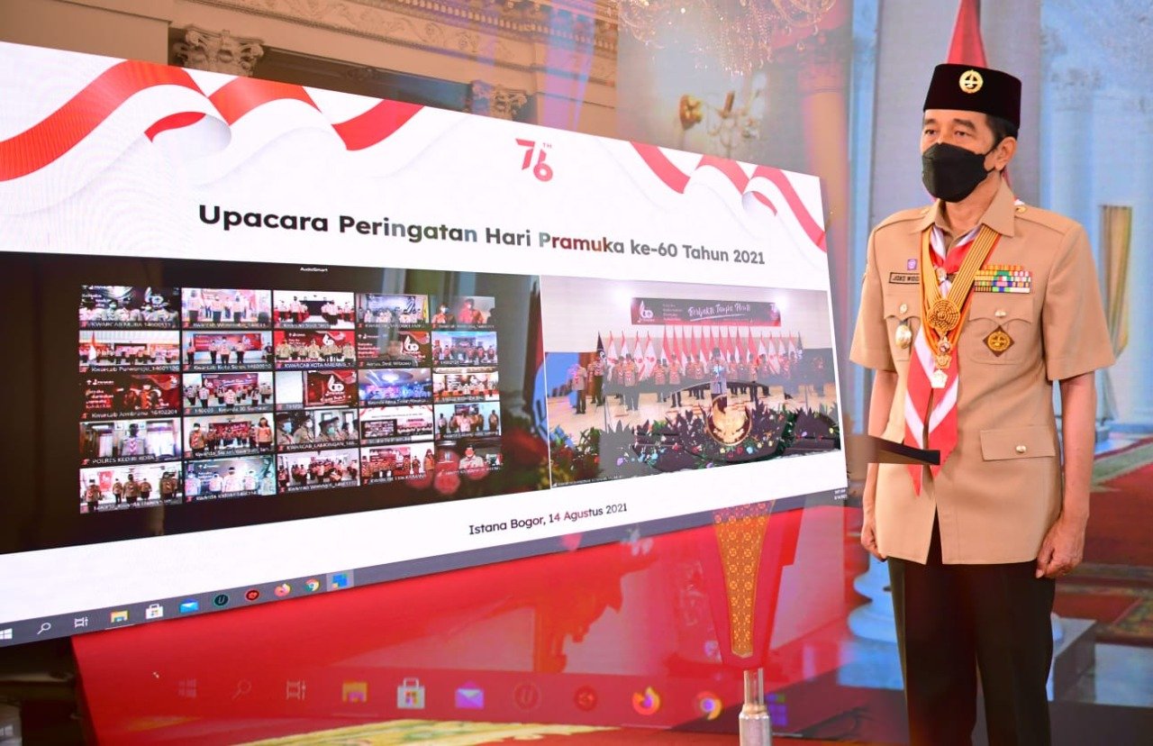 Presiden RI Joko Widodo (Jokowi) meminta agar anggota pramuka menjadi pelopor kedisiplinan dalam menjalankan protokol kesehatan di tengah pandemi yang masih melanda saat ini. Hal tersebut disampaikan Presiden saat memberikan amanat pada Upacara Peringatan Hari Pramuka Ke-60 Tahun 2021, Sabtu (14/8/2021) pagi, secara virtual dari Istana Kepresidenan Bogor, Jawa Barat.
