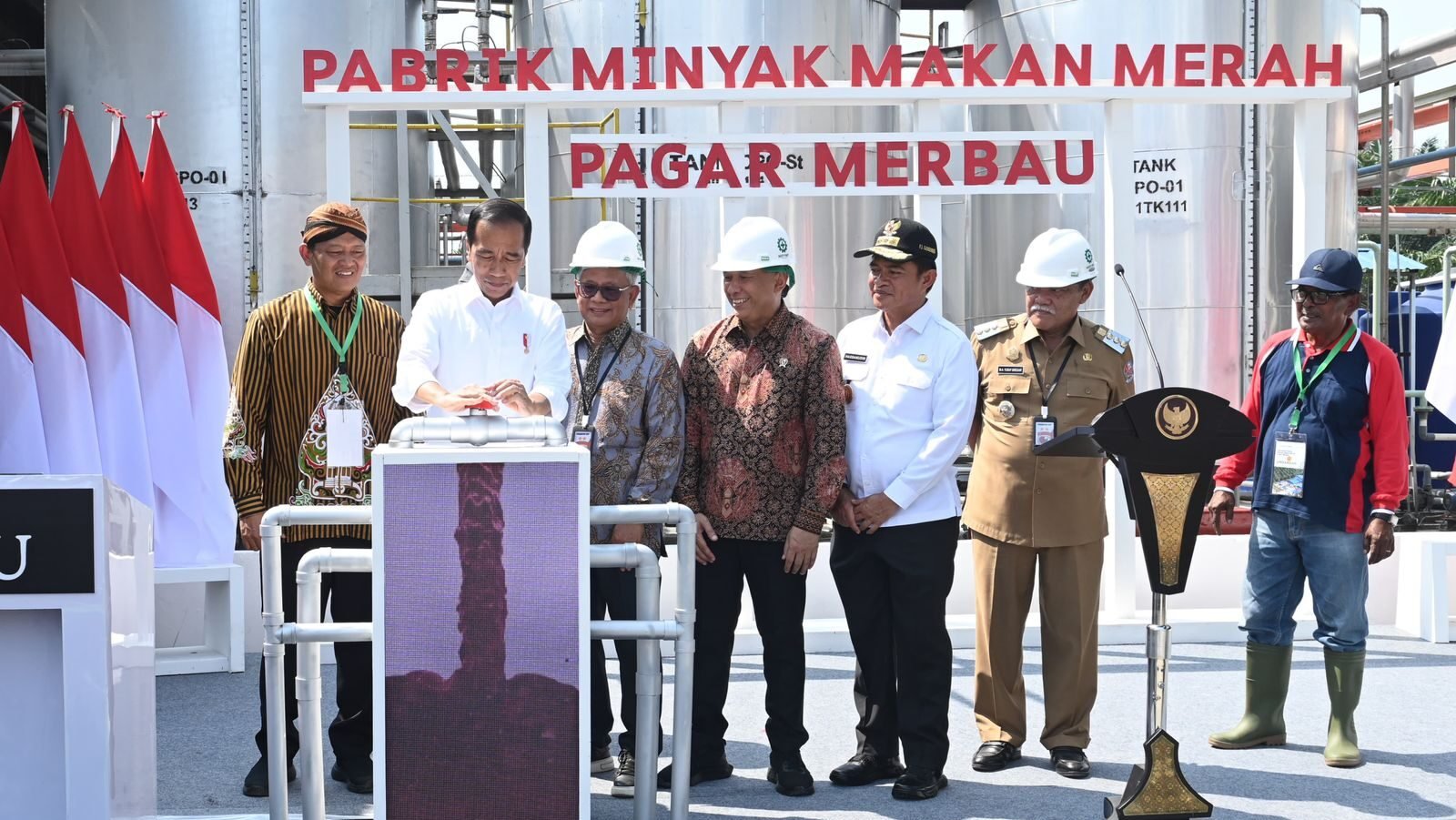 Presiden Joko Widodo meresmikan pabrik percontohan minyak makan merah Pagar Merbau di Kabupaten Deli Serdang, Provinsi Sumatra Utara, pada Kamis, 14 Maret 2024. (rls)