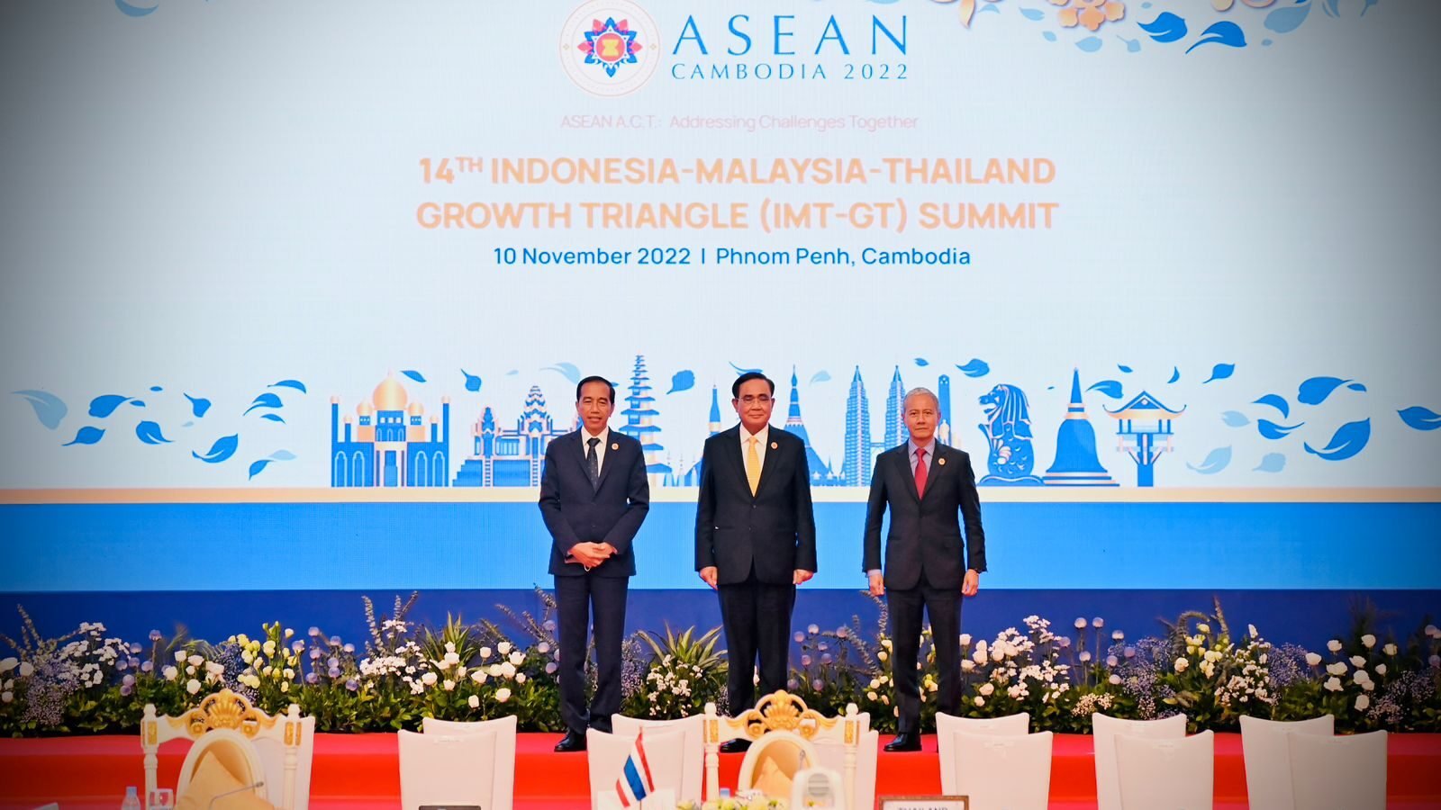 Pengesahan Cetak Biru 2022-2026 Indonesia – Malaysia – Thailand Growth Triangle (IMT-GT) merupakan langkah awal yang implementasinya harus terus dikawal untuk mewujudkan visi IMT-GT 2036. Presiden Jokowi menyampaikan hal tersebut saat berbicara pada KTT IMT-GT ke-14 di sela penyelenggaraan KTT ASEAN di Phnom Penh, Kamboja pada Kamis, 10 November 2022.