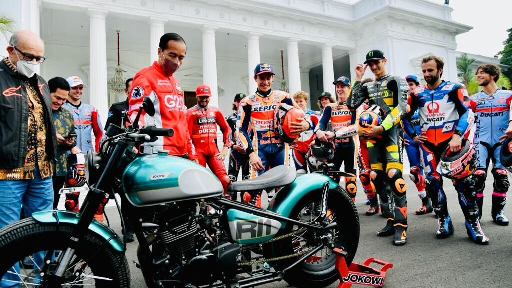 “Sama seperti Anda semua, saya juga suka mengendarai motor. Walaupun motor saya tidak sekeren milik kalian, tapi memiliki sejarah tersendiri. Saya sering mengendarai motor ini untuk mengunjungi daerah, bertemu masyarakat, mendengarkan aspirasi masyarakat, melihat permasalahan di lapangan, meninjau perkembangan pembangunan infrastruktur, hingga mencoba sirkuit di Mandalika,” ujar Presiden saat menjelaskan motor miliknya kepada para pembalap.