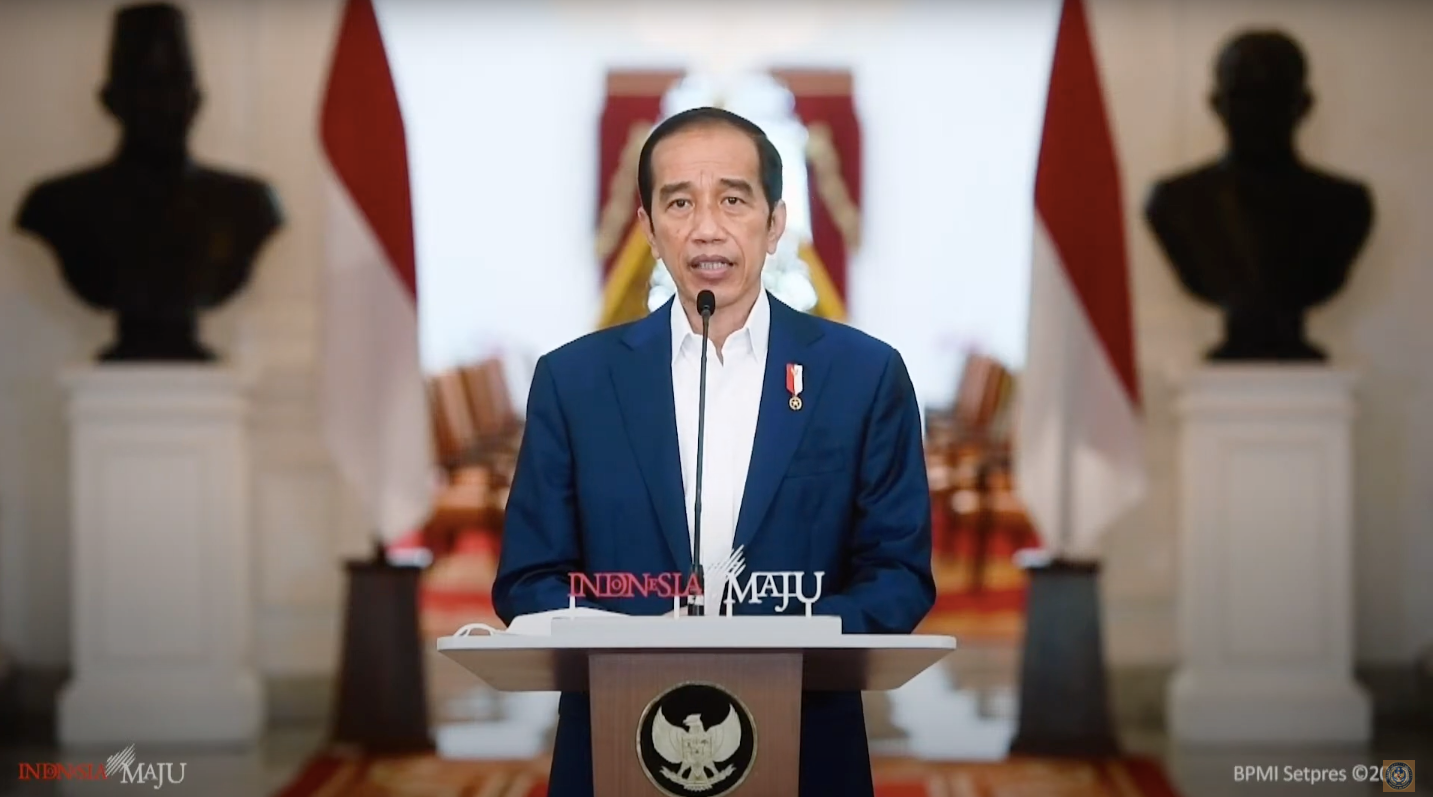 Presiden Jokowi memberikan sambutan pada Peluncuran Kampanye “Beli Kreatif Danau Toba” secara virtual, Sabtu (20/02/2021). (Sumber: Tangkapan layar Youtube Sekretariat Presiden)
