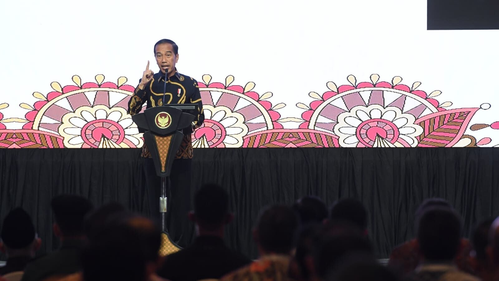 Presiden Joko Widodo menyampaikan pengarahan kepada seluruh menteri, kepala lembaga, kepala daerah, pimpinan Badan Usaha Milik Negara (BUMN), panglima daerah militer, kepala kepolisian daerah, dan kepala kejaksaan tinggi di Jakarta Convention Center (JCC), Jakarta, pada Kamis, 29 September 2022. (rls)