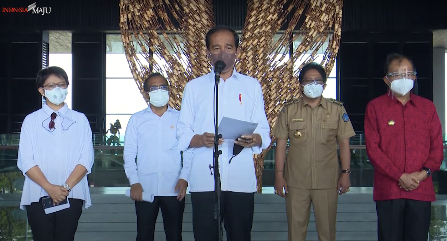 Presiden Joko Widodo usai meninjau sejumlah venue KTT G20 tahun 2022, di Nusa Dua, Bali, Jumat (08/10/2021). (Sumber: Tangkapan Layar YouTube Sekretariat Presiden)