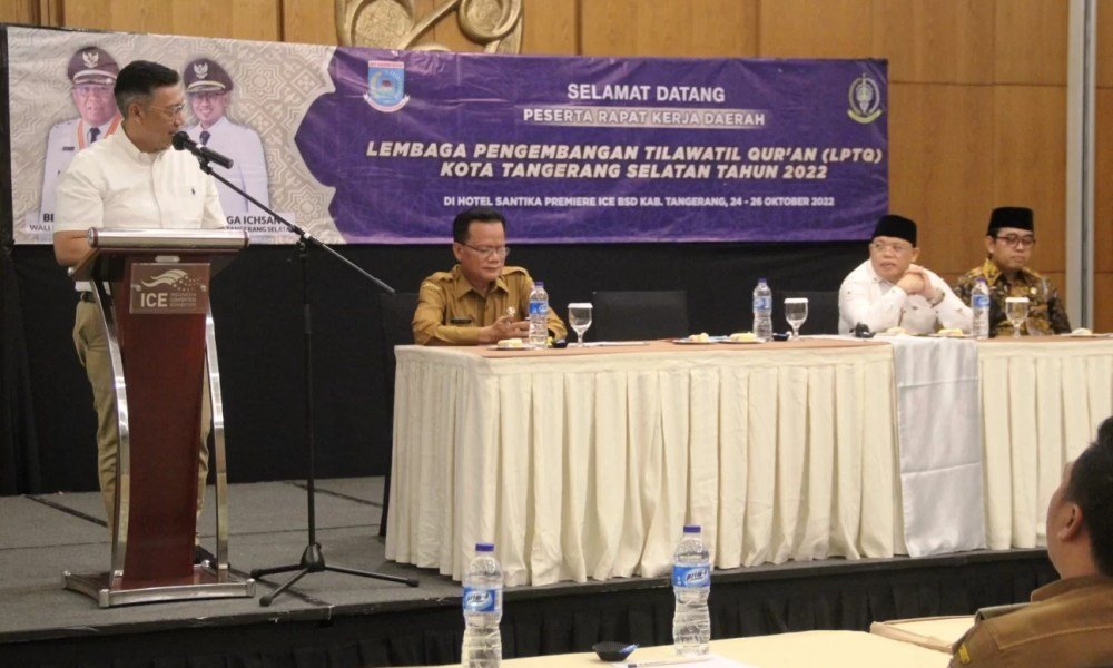 Sekretaris Daerah Bambang Noertjahjo membuka Rapat Kerja Daerah (Rakerda) Pengurus Lembaga Pengembangan Tilawatil Qur’an (LPTQ) Kota Tangerang Selatan di Hotel Santika Premiere pada Senin Malam (24/10).