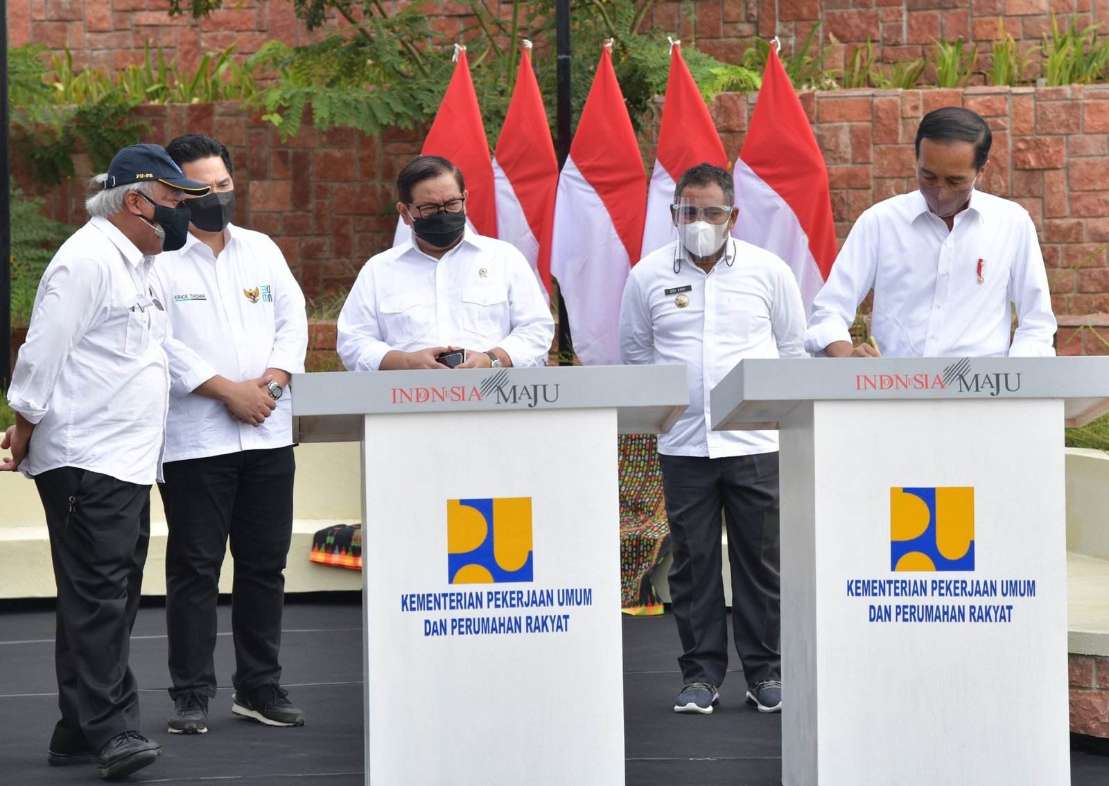 Ketika melakukan peninjauan, Presiden didampingi Menteri Pekerjaan Umum dan Perumahan Rakyat Basuki Hadimuljono, Menteri Perhubungan Budi Karya Sumadi, Sekretaris Kabinet Pramono Anung, Menteri BUMN Erick Thohir, dan Gubernur Nusa Tenggara Timur Viktor Laiskodat. (HIM/UN)