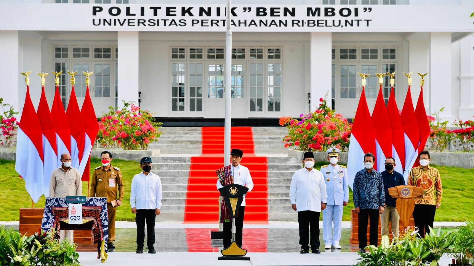Presiden Joko Widodo meresmikan Politeknik Dr. Aloysius Benedictus Mboi, Universitas Pertahanan Republik Indonesia (Unhan) di Kabupaten Belu, Nusa Tenggara Timur (NTT), pada Kamis, 24 Maret 2022. Dalam sambutannya, Presiden menekankan bahwa pembangunan sumber daya manusia (SDM) di seluruh Tanah Air merupakan fondasi untuk Indonesia Maju.