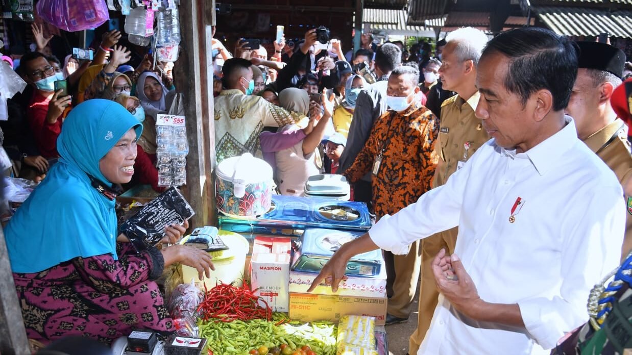 Presiden Cek Harga dan Stok Komoditas Pangan di Pasar Mendenrejo