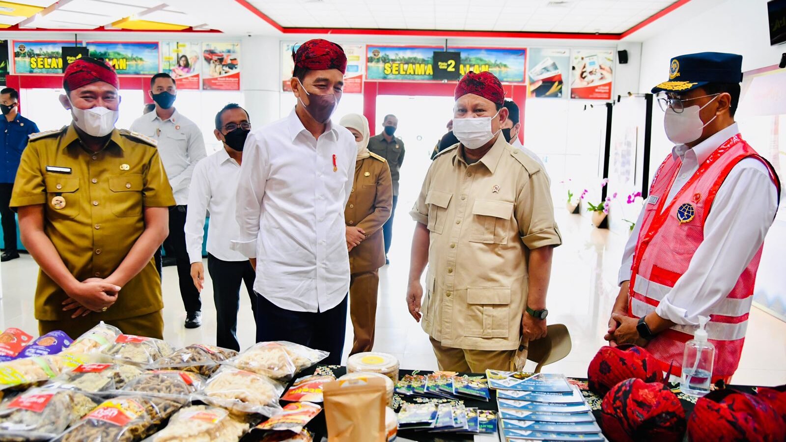 Setibanya di Bandara Trunojoyo, Kabupaten Sumenep, Provinsi Jawa Timur, Rabu, 20 April 2022, Presiden Joko Widodo disambut oleh Menteri Pertahanan Prabowo Subianto dan Menteri Perhubungan Budi Karya Sumadi.