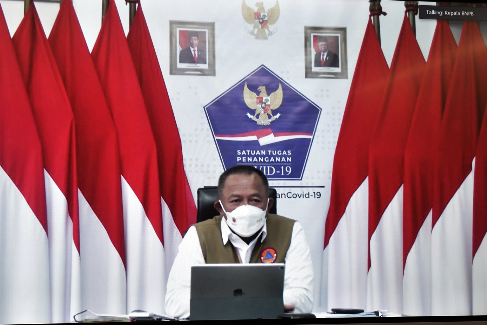 Kepala BNPB sekaligus Ketua Satgas Penanganan COVID-19 Ganip Warsito saat memberikan keterangan pers usai Rapat Terbatas mengenai Penanganan Pandemi COVID-19, secara virtual, Senin (21/06/2021). (Foto: Humas Setkab/Rahmat)