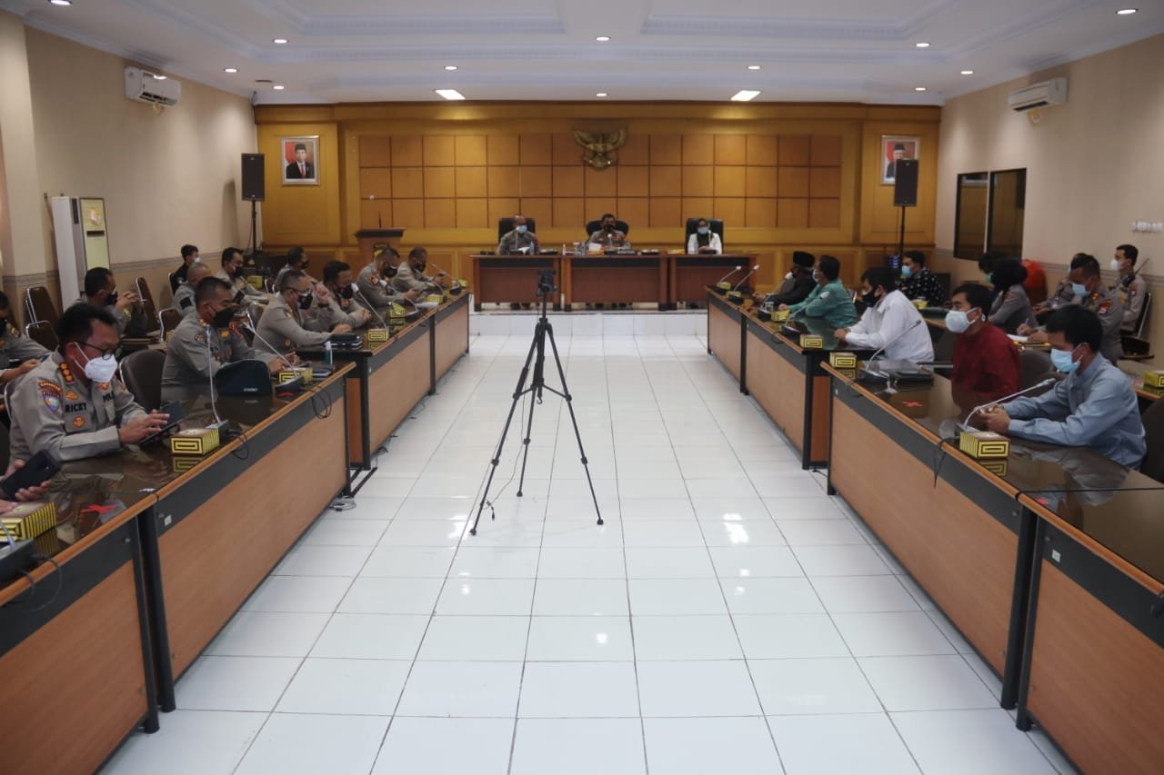 Polda Banten menggelar Rapat Koordinasi terkait pelaksanaan serbuan vaksinasi dalam rangka mensukseskan program percepatan vaksinasi di Ruang Rupattama Mapolda Banten, Selasa (3/8/2021).