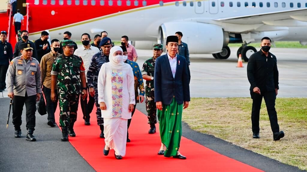 Presiden Joko Widodo tiba di Bandar Udara Internasional Banyuwangi, Kabupaten Banyuwangi, Provinsi Jawa Timur pada Senin, 9 Januari 2023 sekira pukul 17.30 WIB. (rls)