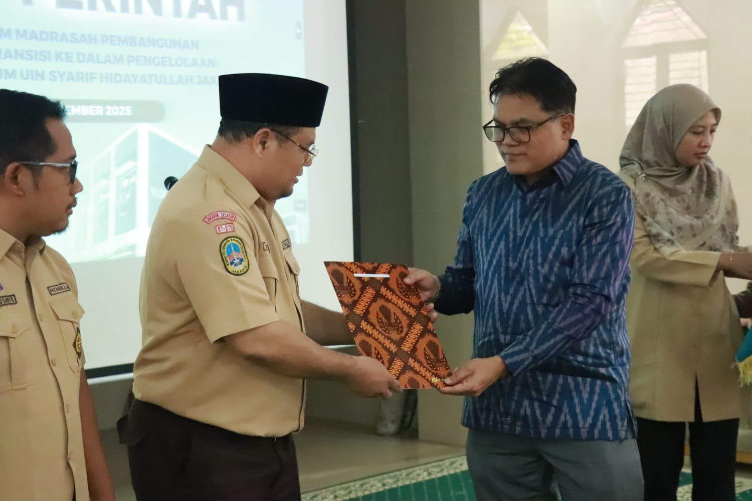UIN Syarif Hidayatullah Jakarta secara resmi menyerahkan Surat Perintah Pengelolaan kepada para pelaksana tugas pimpinan Madrasah Pembangunan. Hal ini sebagai langkah strategis dalam mengawal proses transisi pengelolaan menuju Badan Layanan Umum (BLU).